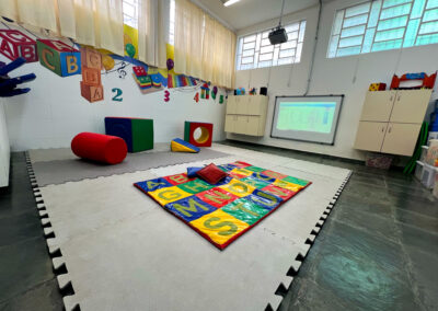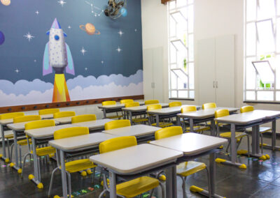 Nossas salas de aula são lúdicas e aconchegantes, projetadas para incentivar o aprendizado através da criatividade e da interação. Contamos com parquinhos, salas de psicomotricidade e música, além de espaços monitorados, garantindo a segurança e o bem-estar das crianças em todos os momentos.