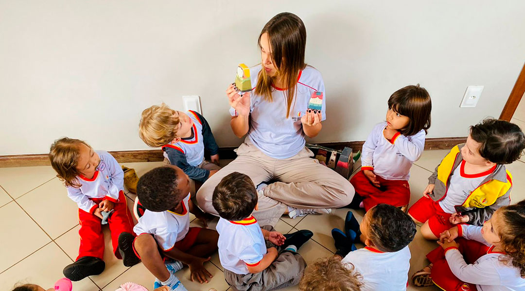 As crianças ampliam sua autonomia e começam a desenvolver a base para o processo de alfabetização, com vivências que unem imaginação e conhecimento.